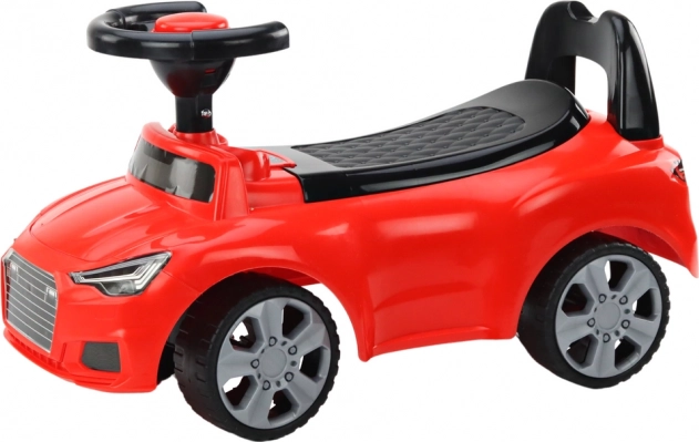 De rode loopfiets voor de allerkleinsten is ontworpen met focus op veiligheid en speelplezier. Realistische stickers van koplampen en grille geven het speelgoed de look van een echte auto, terwijl de stevige kunststof constructie van gecertificeerd kwaliteitsmateriaal duurzaamheid en laag gewicht garandeert voor makkelijke hantering.