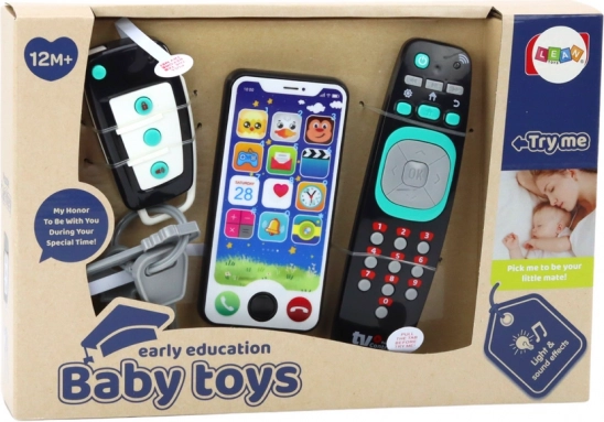 Een set realistische speelgoedjes die je peuter veel plezier bezorgen en hem of haar de wereld op een leuke en leerzame manier laten ontdekken! Onze set bevat autosleutels, een afstandsbediening en een smartphone – voorwerpen die kinderen graag nabootsen nadat ze volwassenen hebben geobserveerd.
