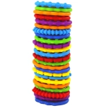 De sensorische armbandjes zijn ontworpen voor de allerkleinste ontdekkers. Elk van de 24 stuks heeft opvallende kleuren en unieke structuren die zowel zicht als tast prikkelen. Dankzij de openingen kunnen de armbandjes eenvoudig aan elkaar gekoppeld worden tot kettingen, cirkels of verschillende vormen, wat creativiteit en concentratie bevordert.