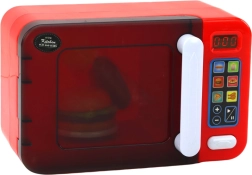 Interactieve kinder-magnetron in het rood die keukenspel omtovert tot een realistische ervaring. Voorzien van lichteffecten, een draaiplateau, openende deur en opwarmprogramma’s. Inclusief accessoires – hamburger, frietjes en hotdog. Veilige speelpret voor kinderen vanaf 3 jaar, werkt op 3× AA (meegeleverd).