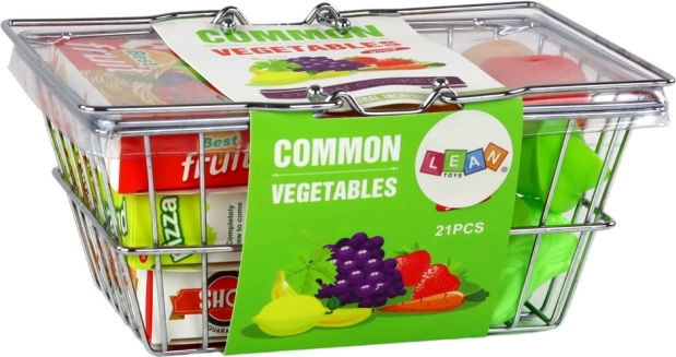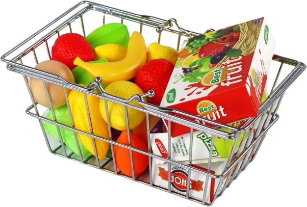 Deze authentieke metalen kinderboodschappenmand verandert elk spel in echt winkelen. De set bevat een gevarieerde selectie etenswaren – van fruit en groenten tot pizza en sap – zodat kinderen voedselherkenning, tellen en rollenspellen uit het dagelijks leven kunnen oefenen.