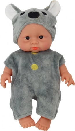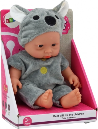 Deze charmante babypop in koala-stijl is gemaakt voor kleine handjes en grote fantasie. De zachte grijze outfit met gele knoopjes en het mutsje met koala-oortjes geven de pop een onweerstaanbare uitstraling. Dankzij de beweegbare ledematen en het draaibare hoofd kunnen kinderen gemakkelijk houdingen veranderen en hun eigen verhalen creëren.