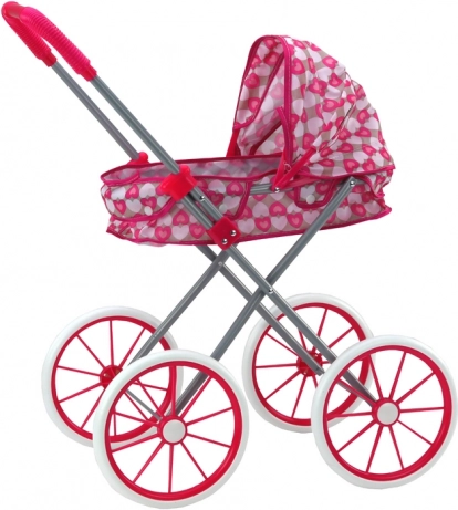Een schattige roze poppenwagen met hartjesmotief die elke kleine mama blij maakt. Biedt een stijlvol design, grote foam wielen voor een soepele rit, een inklapbare kap en eenvoudig opvouwen voor praktische opslag. Geweldig voor de ontwikkeling van fantasie, empathie en sociale vaardigheden.
