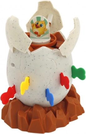 Het interactieve spel Opspringende Kip verandert elk moment in een onvergetelijk avontuur. Plaats het ei op de meegeleverde bruine basis, stop de kip in het ei en begin het spel met gekleurde pinnen. Wanneer een speler een pin op de juiste plek plaatst, springt de kip onverwacht uit het ei, wat voor veel gelach zorgt.