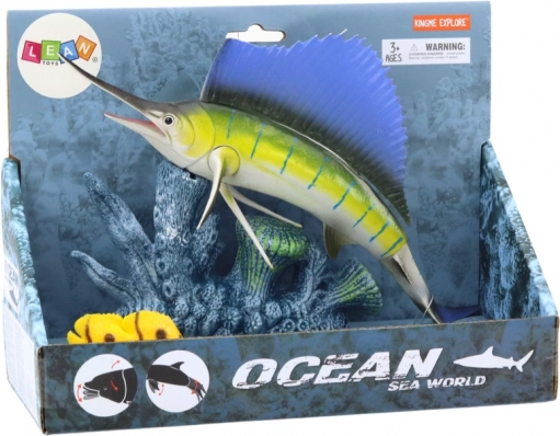 Het zwaardvis beeldje is zorgvuldig vervaardigd met aandacht voor kleur en anatomische details, wat het een authentiek uiterlijk geeft en kinderen het gevoel geeft ontdekkers van de onderwaterwereld te zijn.