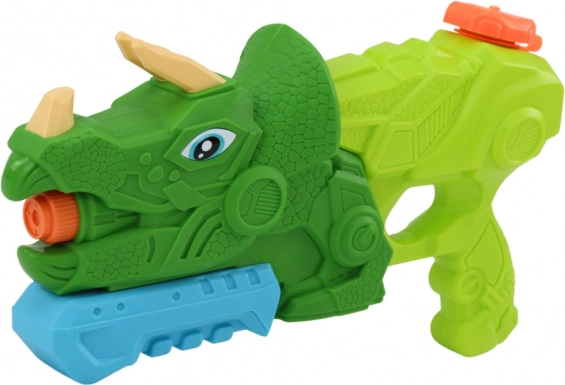 Waterpistool dinosaurus Triceratops is een geweldige keuze voor watergevechten voor kinderen. Deze groene dinosaurus met oranje en blauwe details is ontworpen voor volop plezier met kinderveiligheid in gedachten. De tank heeft een capaciteit van ongeveer 1000 ml en dankzij de pomphendel spuit het water uit de bek van de dinosaurus.