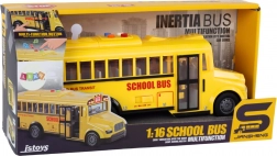 Schoolbus met wrijvingsaandrijving! Dit indrukwekkende voertuig op schaal 1:16 in een intense gele kleur bezorgt uw kind onvergetelijke momenten vol plezier.