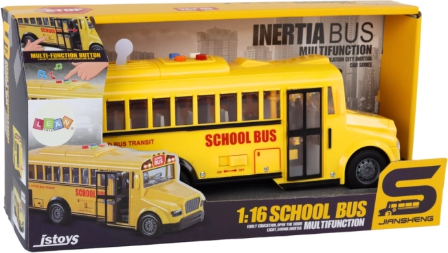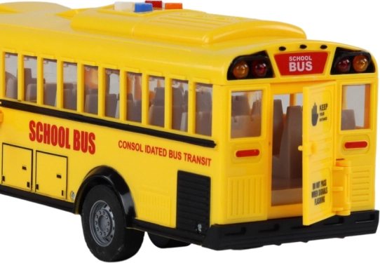 Schoolbus 1:16 Wrijvingsaandrijving Openende Deuren Lichten Geluiden Geel