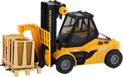 De heftruck biedt beweegbare vorken en een haak voor het manipuleren van ladingen, wat kinderen een authentiek interactieve speelervaring geeft.