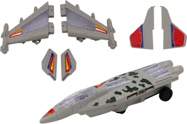 Grijze camouflage, opvallende vleugels en bewapningsdetails herinneren aan een echte F-35 jager. Kinderen spelen moeiteloos dappere piloten en verzinnen talloze actie-missies.