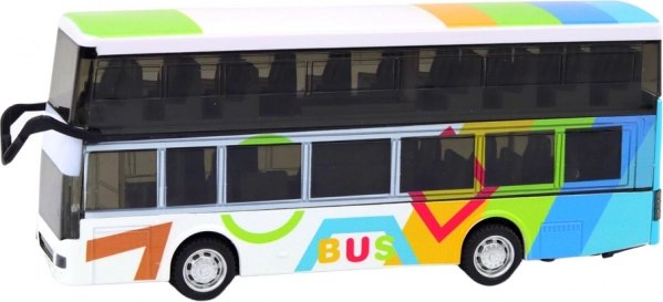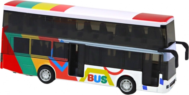 Een leuke en duurzame speelgoedbus voor kleine fans van openbaar vervoer: een dubbeldekkers metalen bus met vliegwiel- (frictie) aandrijving, licht- en geluidseffecten en openende deuren en bagageruimte. De metalen constructie zorgt voor een lange levensduur en de realistische details stimuleren fantasierijk spel.