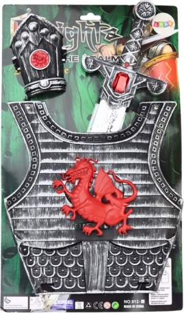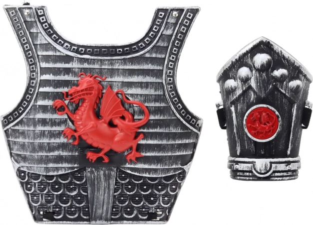 Dit ridderkostuum voor kinderen is ontworpen voor fantasierijk heldenspel en carnavalsverkleedpartijen. Het harnas met rode draak, het stijlvolle zwaard en de scheenbeschermer vormen een uitgebalanceerde trio aan accessoires die elke kleine krijger zelfvertrouwen en authenticiteit geven. Duurzaam plastic en verfijnde details ondersteunen urenlang veilig speelplezier.