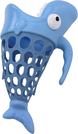 De interactieve haaivormige korf verandert elk badmoment in een avontuur. Kinderen kunnen 6 kleurrijke visjes vangen met de lichte en gemakkelijk vast te houden gaaskorf. Het spel ontwikkelt geduld, precisie en oog-handcoördinatie en stimuleert actieve beweging in het water.