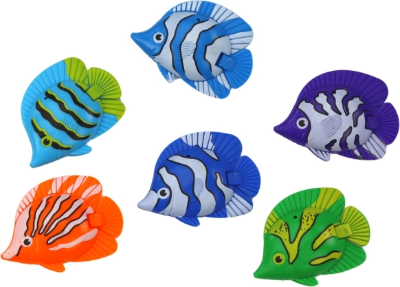 De set bevat zes visjes in verschillende kleuren met opvallende details die op het water drijven en uitnodigen tot spel. Kinderen trainen precisie en geduld.