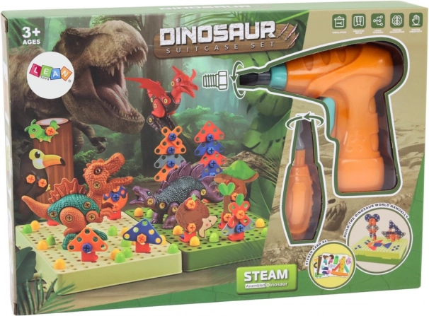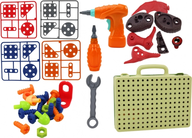 Kinderen schroeven en draaien de afzonderlijke dinosaurusdelen los met een veilige, gemakkelijk te bedienen boormachine en gereedschap – ideaal voor de ontwikkeling van de fijne motoriek.