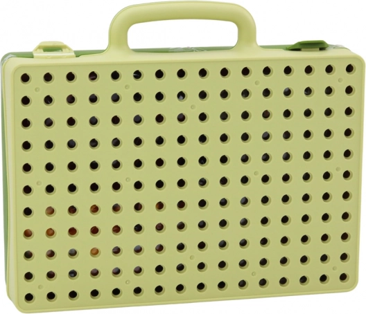 Alle onderdelen berg je op in een stevige koffer met handgreep. De geperforeerde zijde dient als bouwplaat om op te schroeven.