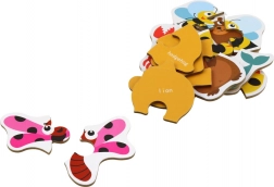 In deze unieke puzzelset vind je 24 verschillende dieren, elk verdeeld in twee stukjes. De taak van het kind is om de stukjes zo te leggen dat er een compleet dier ontstaat. Deze activiteit brengt niet alleen speelplezier, maar ontwikkelt ook logisch denken en de coördinatie tussen beweging en zicht.