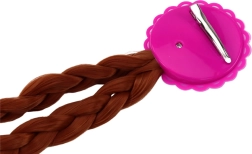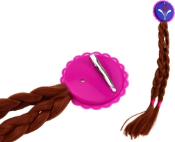 Allereerst is er een mooie haarspeld met twee lange vlechten die elke haarstijl charme en elegantie geeft. Een roze handschoen versierd met blauwe glitters zorgt voor een bijzondere glans en je kleine prinses zal ermee stralen op elk bal.