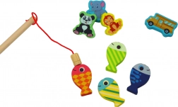 Een extra attractie is de magnetische hengel, waarmee het kind sommige stukjes met een magneet eenvoudig kan oppakken en bij de juiste plekken op de plaat kan plaatsen. Dit interactieve element voegt speelsheid toe en moedigt het kind aan om verder te ontdekken en te leren.