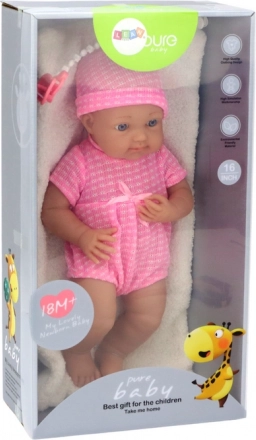 Deze babypop biedt kinderen veel tedere speelpret en oefening in zorgzaamheid. Het roze rompertje met strikje en het bijpassende mutsje benadrukken haar charme, terwijl realistische gelaatskenmerken en beweegbare ledematen creatief, imiterend spel ondersteunen. Inclusief speen aan een koord en een zacht dekentje om te troosten en in slaap te helpen.