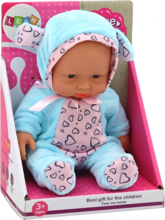 Deze kleine pop – baby brengt kinderen veel tedere momentjes en leuke verhaaltjes. De stijlvolle blauwe outfit met hartjes en de muts met oortjes, vastgebonden met een strikje, geven de pop een unieke charme. Dankzij de bewegende ledematen en het draaibare hoofd kunnen kinderen gemakkelijk houdingen veranderen en zowel fijne motoriek als fantasie trainen.