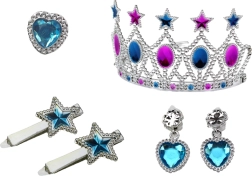 De set bevat een kroon versierd met imitatie-diamanten in twee prachtige kleuren: blauw en roze. Deze kroon voegt niet alleen glans toe, maar wordt ook een symbool van de uniciteit die elke kleine prinses wil voelen.