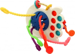 Het speeltje bevat 6 koordjes in verschillende kleuren en texturen die niet alleen uitnodigen om te spelen, maar ook de tastzin en coördinatie ontwikkelen. Sommige koordjes zijn makkelijk om aan te trekken, terwijl andere meer kracht vereisen, wat een uitdaging vormt voor kleine handjes.