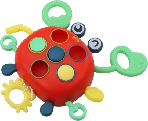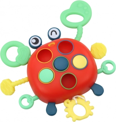 Elk ledemaat van de krab is bedekt met uitsteeksels die als een geweldige bijtring dienen. Het voldoet aan de behoeften van kinderlijke ontdekking en biedt tegelijkertijd de mogelijkheid om nieuwe vormen en kleuren te verkennen.