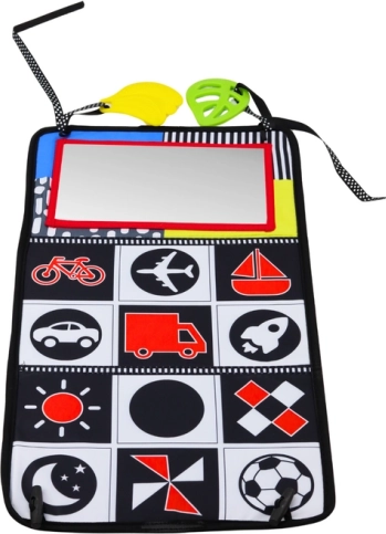 Het spiegeltje nodigt uit tot het ontdekken van het eigen spiegelbeeld en het knisperboekje biedt extra zintuiglijke stimulatie.