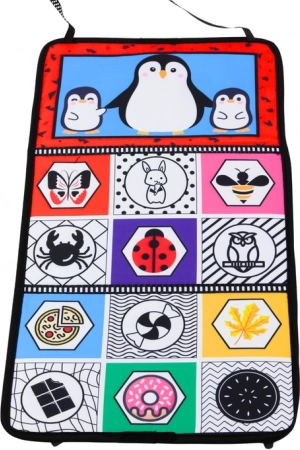 De dubbelzijdige speelmat voor kinderen biedt een brede waaier aan visuele en motorische prikkels voor je kind. Dankzij contrasterende patronen met dier- en voertuigmotive ondersteunt hij de ontwikkeling van het visuele waarnemingsvermogen.