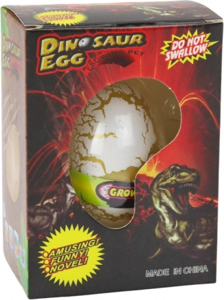 Het dino-ei komt uit en groeit na onderdompeling in water, wat zorgt voor een fascinerend schouwspel.
