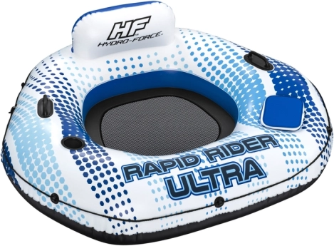 De hoge opblaasbare rugleuning ontlast rug en nek, terwijl de netbodem aangenaam koelt – de ideale combinatie voor urenlang relaxen op het water.