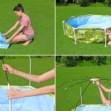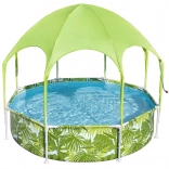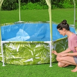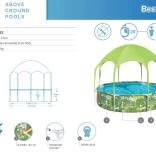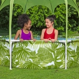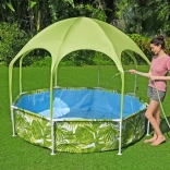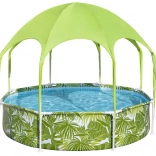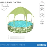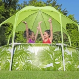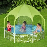 Het Bestway SPLASH-IN-SHADE zwembad is ontworpen om kinderen te stimuleren tot beweging en veilige waterpret in de tuin. De overkapping met geïntegreerde sproeier biedt schaduw en verkoeling; sluit eenvoudig een tuinslang aan en het plezier kan beginnen. De kleurrijke zomerse print zal jonge zwemmers aanspreken en de stevige constructie zorgt de hele zomer voor stabiliteit.