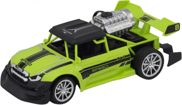 De sportieve look met spoiler en zichtbare motordetails wordt aangevuld met heldere lichteffecten. De auto ziet eruit en rijdt als een echte racer.