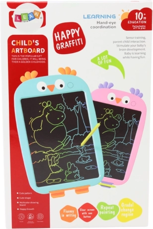 De tekentablet met blauwe tint en vogeldesign biedt kinderen onbeperkte mogelijkheden in artistieke expressie. Kinderen kunnen hun verbeeldingskracht uitdrukken door te tekenen, schilderen en schrijven op het scherm zonder papier te gebruiken, wat het milieu spaart en kinderen leert over ecologie.