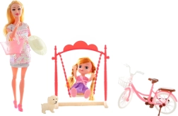In de set zitten een auto, scooter en fiets voor dynamische ritjes, een schommel voor rustmomenten en een schattig hondje als trouwe metgezel. Kinderen kunnen outfits en accessoires afwisselen, uitstapjes plannen en hun eigen verhalen creëren.