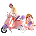 De roze auto (33 cm), realistische scooter (30 cm) en fiets (17 cm) laten de poppen op pad gaan: op uitstapjes, naar de stad of naar het park. Ze zijn eenvoudig te bedienen en stimuleren actief spel.