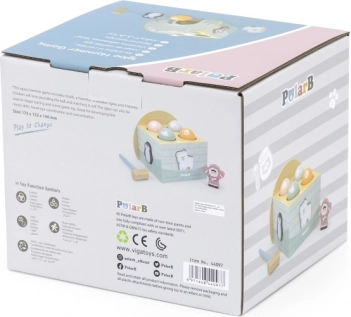 De Iglo-speelset van Viga is een uitstekende keuze voor peuters. Dit veelzijdige speelgoed combineert meerdere activiteiten: hamertje-tik met ballen, een vormsorteerder en de mogelijkheid om met figuurtjes te spelen. Al spelend ontwikkelen kinderen hun fijne motoriek, verbeteren ze de coördinatie en ook vaardigheden die later bij het schrijven helpen. Na een succesvolle tik met het hamertje schieten de ballen via een klein deurtje uit het iglo naar buiten. Indien toegang tot de binnenkant nodig is, kan het voorpaneel worden verwijderd.