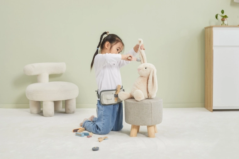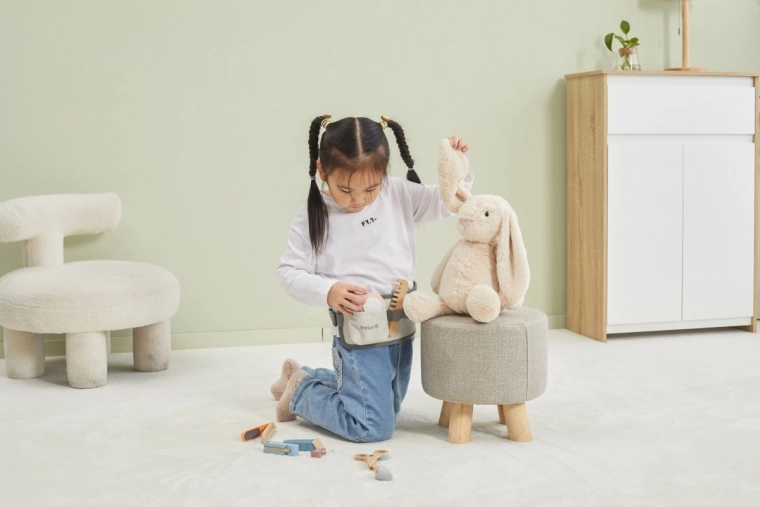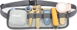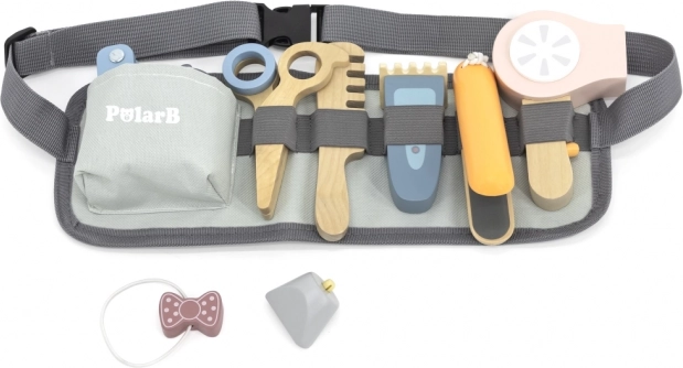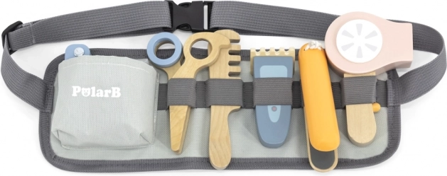 Deze kappersset is ontworpen zodat kinderen hun creativiteit kunnen ontwikkelen via rollenspel. Hij bevat diverse houten tools, zoals een föhn, kam, stijltang, schaar, scheerapparaat en scheermes. Met de verstelbare riem hebben kinderen alles wat ze nodig hebben altijd bij de hand. Alle onderdelen zijn veilig en geverfd met niet-toxische verf op houten basis.