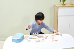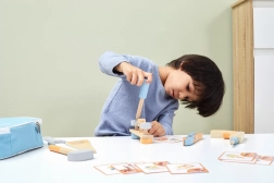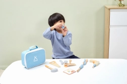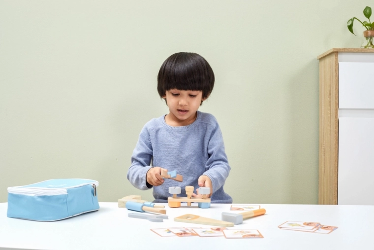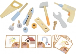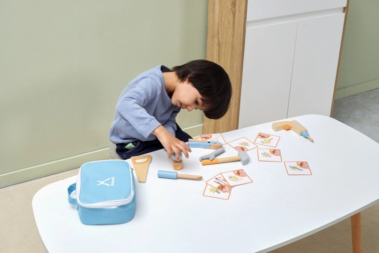 Deze houten gereedschapsset ontwikkelt de motorische vaardigheden en de oog-handcoördinatie van kinderen.