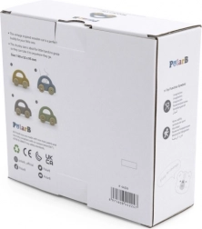Het autootje is ontworpen met een moderne, eenvoudig pastel stijl die zowel kinderen als ouders aanspreekt.
