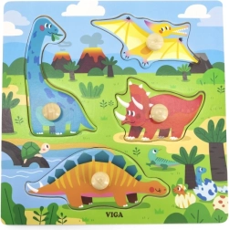 Houten puzzel met dinosaurussen van het gerenommeerde merk Viga is het ideale educatieve speelgoed voor kinderen vanaf 12 maanden en helpt bij de ontwikkeling van de fijne motoriek, vormherkenning en de oog-handcoördinatie.