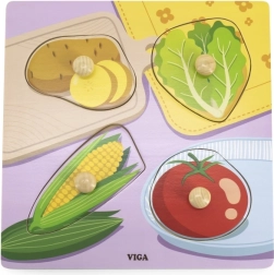 Houten groentepuzzel van het gerenommeerde merk Viga helpt kinderen motorische vaardigheden, coördinatie en logisch denken te ontwikkelen. De set bevat 4 groentestukjes en kleurrijke illustraties die het herkennen van vormen vergemakkelijken.