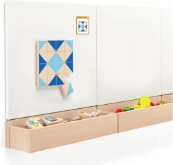 Deze kwalitatieve set houten magnetische tangrams biedt uren creatieve speelpret. Kinderen kunnen eenvoudige tot complexere motieven leggen aan de hand van voorbeelden of hun eigen fantasie. De magnetische stukken in aangename blauwtinten en natuurlijk hout hechten stevig op metalen oppervlakken of magnetische borden.