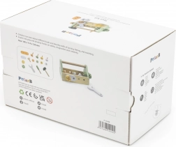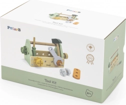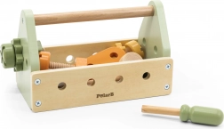 Deze stijlvolle houten gereedschapskist in de zachte kleuren van de POLARB-collectie biedt kinderen een veilige en leuke manier om de wereld van gereedschap te ontdekken. De onderdelen liggen prettig in de hand, hebben geen scherpe randen en zijn gelakt met veilige verven die geschikt zijn voor kinderen.