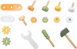 Kinderen kunnen schroeven, hameren en eenvoudige mechanismen met tandwielen samenstellen – daarbij trainen ze spelenderwijs vingervaardigheid, geduld en ruimtelijk inzicht. De set is ideaal voor zelfstandig spelen en voor samen creatief bezig zijn met ouders.