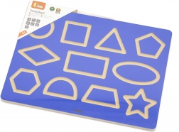 Stevige houten plaat met prettige tactiele feedback. Makkelijk te gebruiken aan tafel en onderweg, perfect voor thuis en in de kleuterklas.