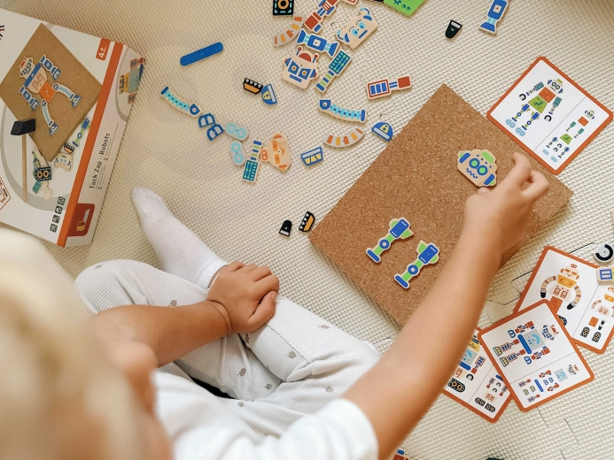 Bijgevoegd zijn instructiekaarten met 10 robotontwerpen, die helpen bij het herkennen van vormen, oog-handcoördinatie en geduld. Kinderen kunnen bouwen volgens voorbeelden of helemaal vrij, wat creatief denken en zelfstandigheid stimuleert.