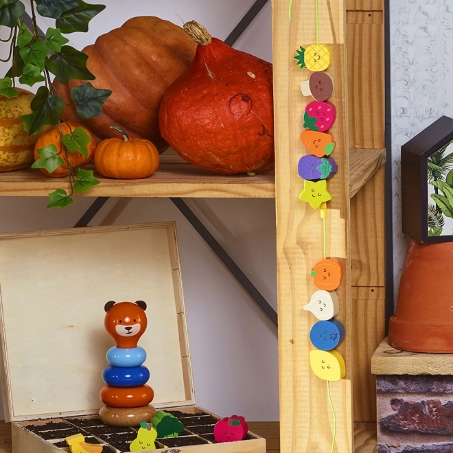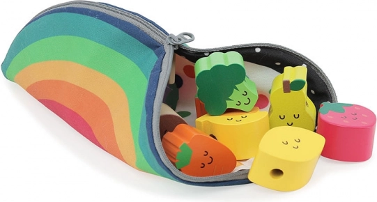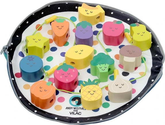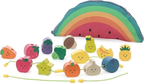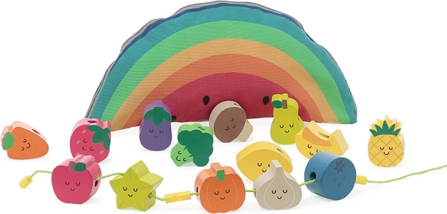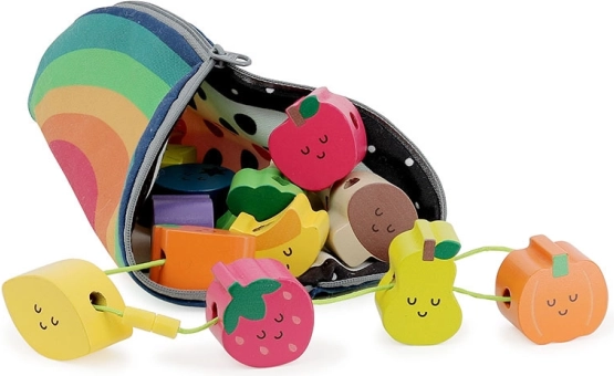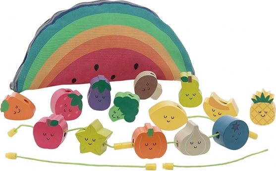 Houten rijgkralen, ideaal voor kleine kinderen vanaf 18 maanden. Dit speelgoed helpt kinderen bij het ontwikkelen van fijne motoriek en coördinatie. Mooie illustraties van Andy Westface maken het rijgen van deze kralen leuk. Kinderen leren kleuren en vormen herkennen en verrijken tegelijkertijd hun woordenschat.