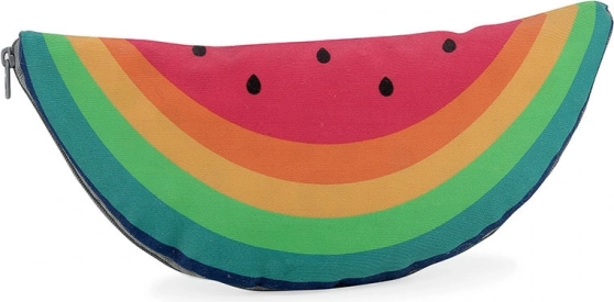 Alle onderdelen kunnen handig worden opgeborgen in een etui in de vorm van een watermeloen.